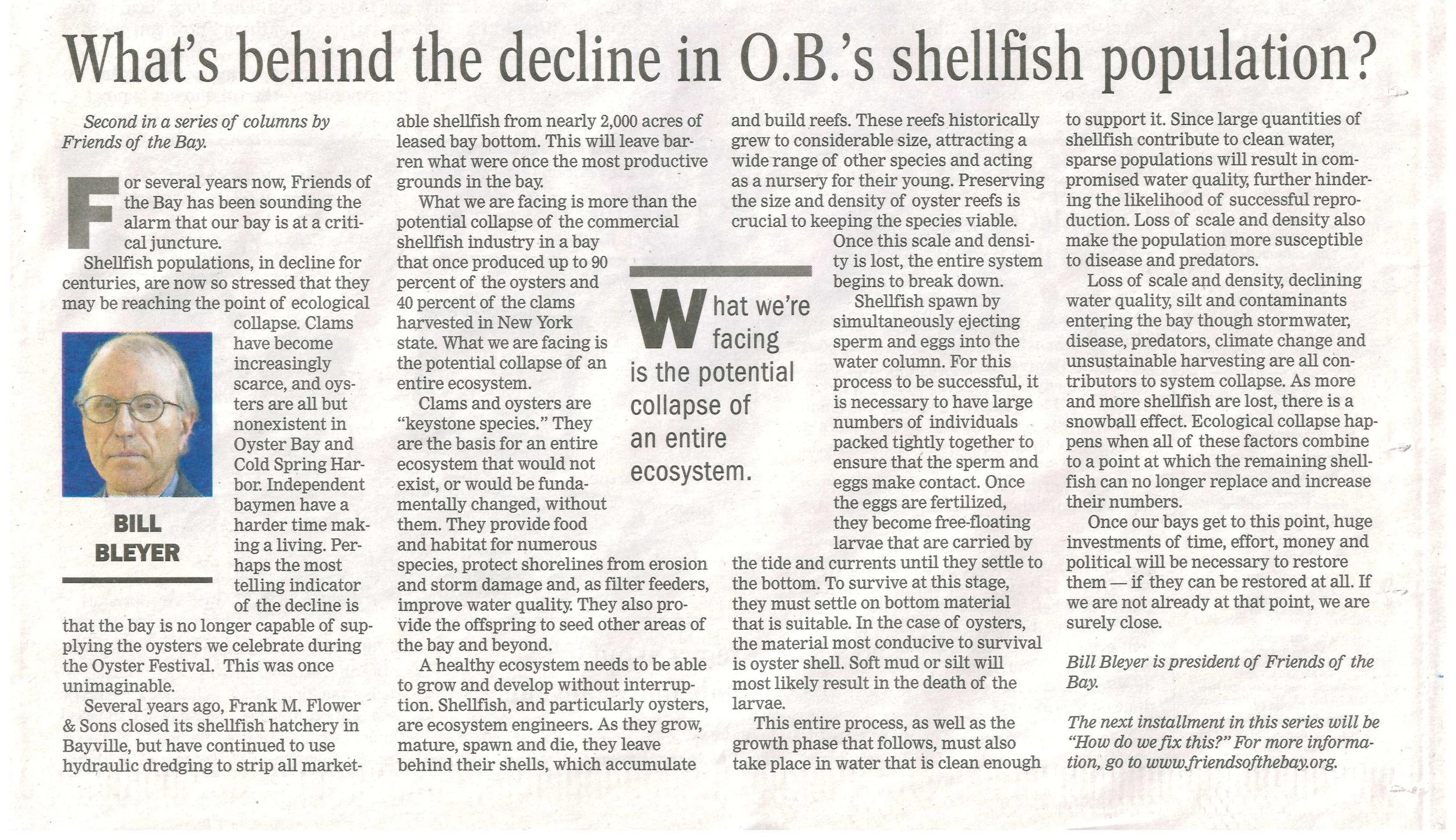 The lease expiration offers a once-in-many lifetimes opportunity to help restore the bay and its dwindling shellfish populations for many generations to come. Friends of the Bay is anxious to help.